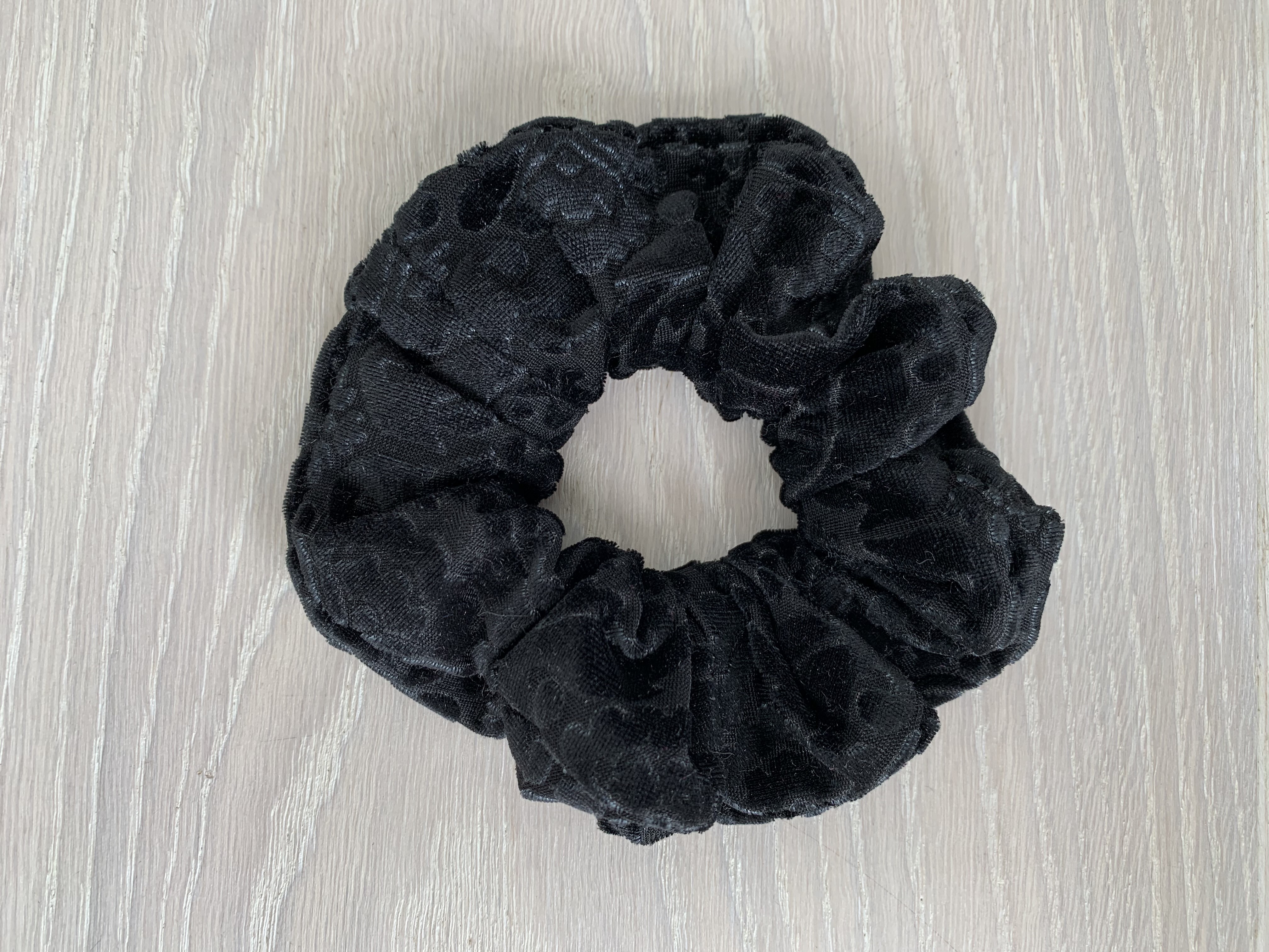 Tissus noir avec motifs floraux en velours.