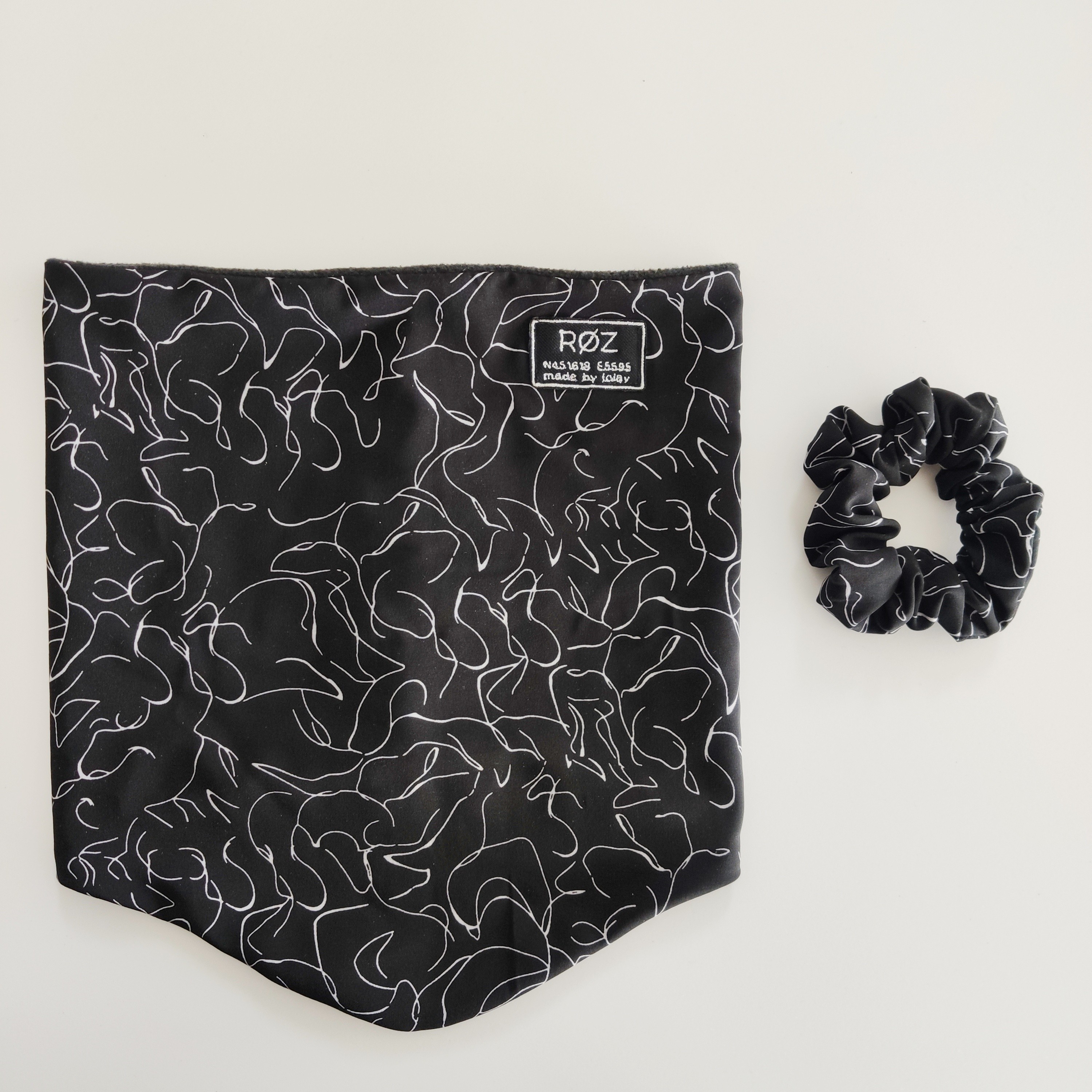 Tissu léger noir avec des traits blanc. (4% Élasthanne)